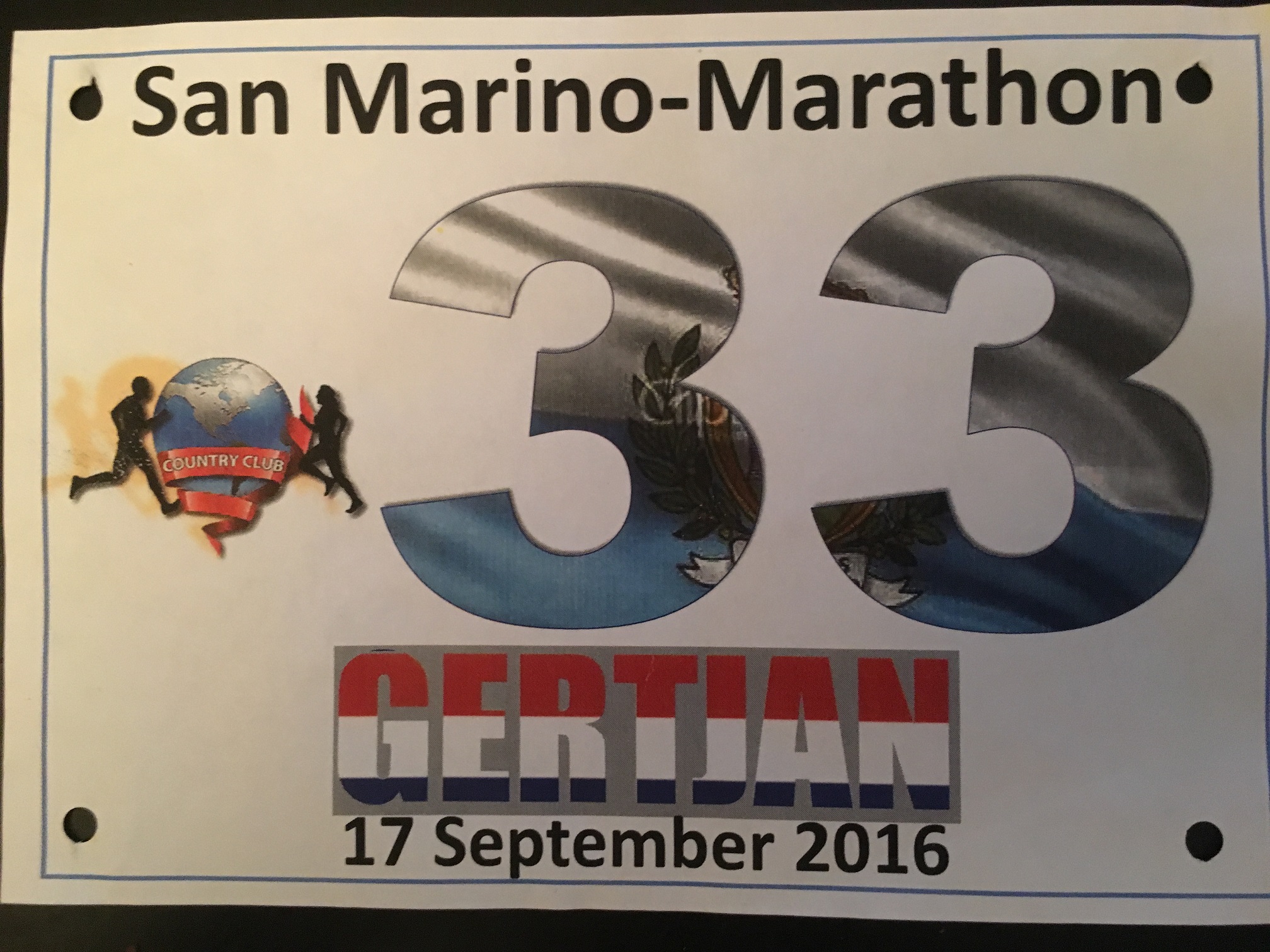 De inschrijving was vrij, maar er deden vooral mensen mee die lid waren van de club. Een paar Hongaren was ik al eens tegengekomen in Iran. Op vrijdag aangekomen in Bologna, auto gehuurd en op naar San Marino. Eerst was er een bijeenkomst van alle leden van de club (enige vereiste: in minimaal 30 landen een marathon hebben gelopen, dus ik ben ook lid), en daar liet een Hongaar – die ik nog niet kende – weten dat hij voor de overwinning ging. Oke.