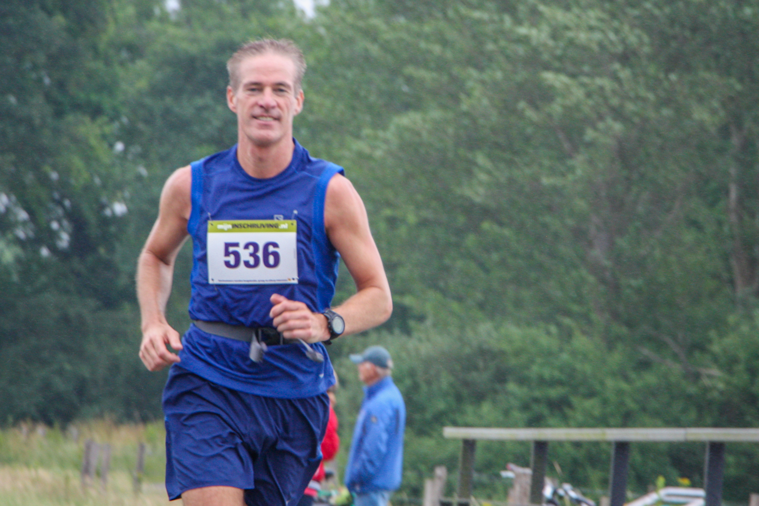 Het middenstuk was het zwaarst. Ik had de 44km een beetje onderschat met voeding, zodat ik op de stukken mul zand en de “fiets-cross”-heuveltjes die daar waren toch pap in de benen kreeg. Echt een minder stuk was dat. Snel een gelletje erin. Het hielp matig. En waar ze bij de verzorgingsposten normaal niet veel meer aan me kwijt raken als wat water en misschien een stukje koek of banaan of iets dergelijks heb ik bij de laatste post maar wat meer suikers genomen. Cola, suikerbrood etc. Dat deed me goed.