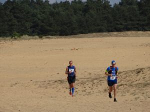Daarna het zand weer in. Klein stukje wandelen dan, ik had er wel vertrouwen in dat ik me conditioneel wel kon meten aan m’n conculega, maar dat weet je nooit natuurlijk. Even een half minuutje de beentjes wat rust geven en dan verderop, als we het zand uit zijn, maar terugpakken dan.