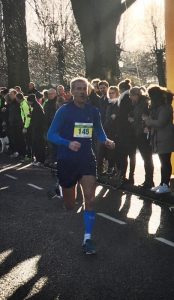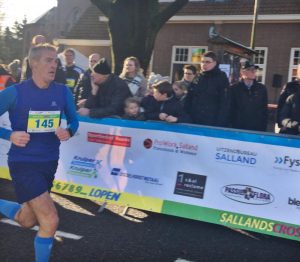 Ongeveer tussen de 2,5 en 3km kon ik gelukkig weer aansluiten bij m’n directe concurrent. Direct maar weer inhalen, dan. Achteraf zei hij tegen me dat ie vanaf 3 kilometer er doorheen zat. Dat was te merken. Alhoewel ik niet achterom keek, hoorde ik niemand vlak achter me lopen. Dus weer was het een kwestie van gewoon doorstoempen. Er zat nog een pittig klimmetje in, maar de laatste kilometer was gelukkig weer goed te doen (iets aflopend?). En zo ging ik onbedreigd op de finish af. Een seconde voordat ik de finish passeerde hoorde ik opeens mijn naam vanuit het publiek. Leuk! Daar stond Raymond, mijn collega. En hij maakte ook nog snel even wat foto’s.