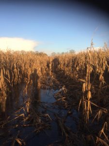 Na dik 28km moesten we een mais-veld in. Dat was even een stuk waar je zeker tot je enkels in de blubber wegzakte. Het was nog verstandiger om tot (zeker) je knieen door het water te gaan, dat ging sneller dan steeds je voeten weer uit dat drijfzand halen. Maar dat was het ergste niet!