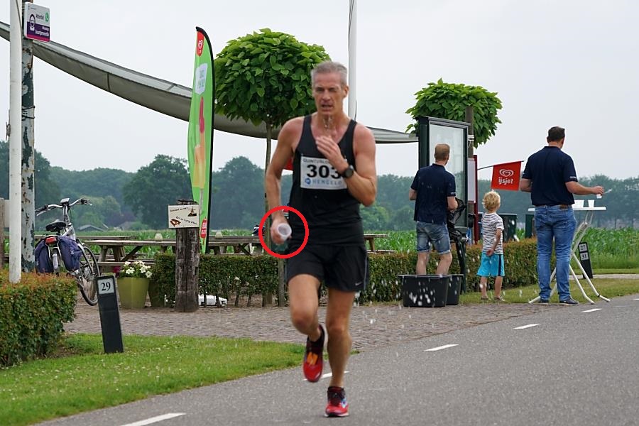 De man voor me hield ik een aantal kilometers een seconde of 15 voor me. Die voorsprong had hij in de eerste kilometer gepakt.
