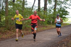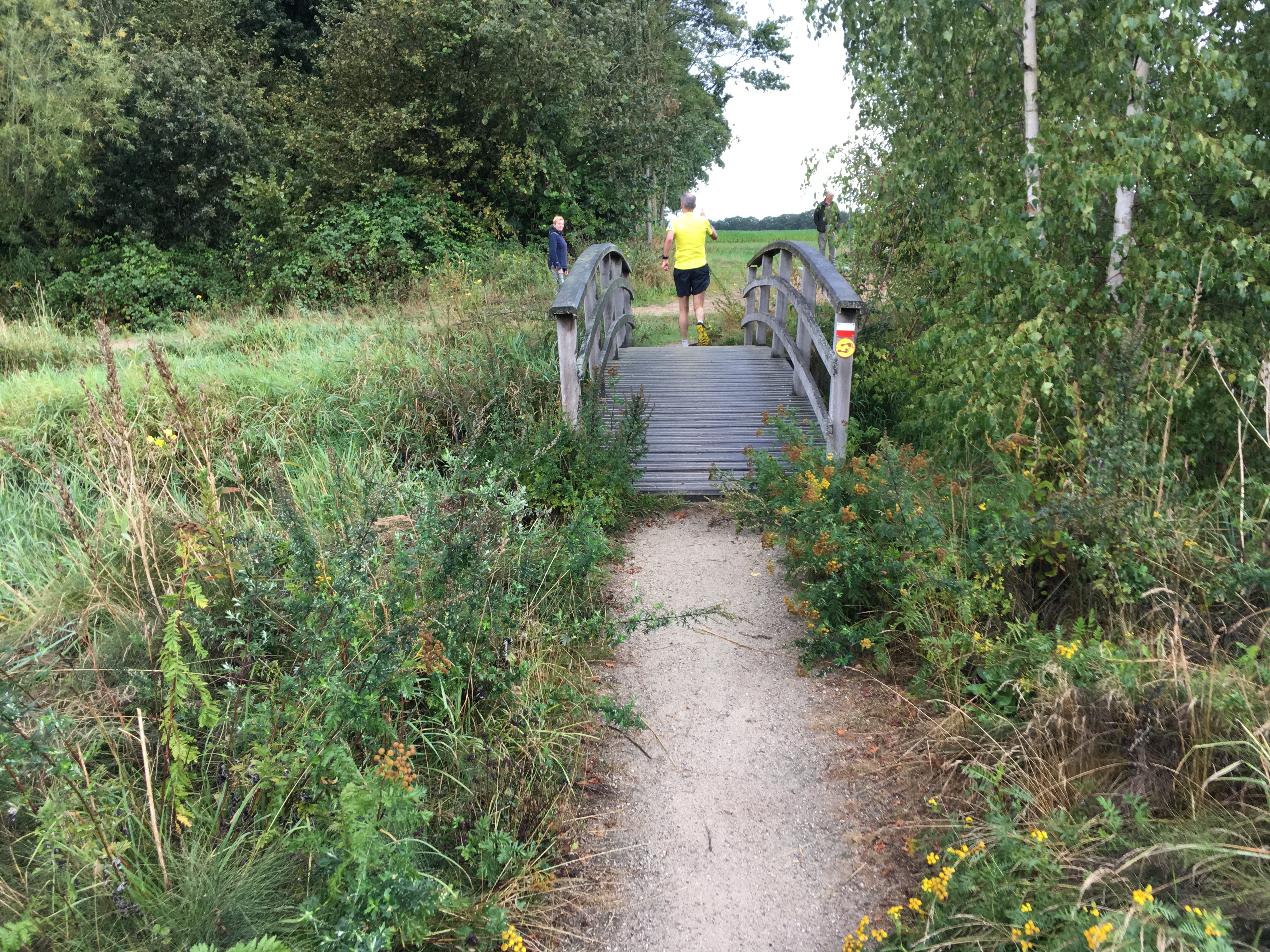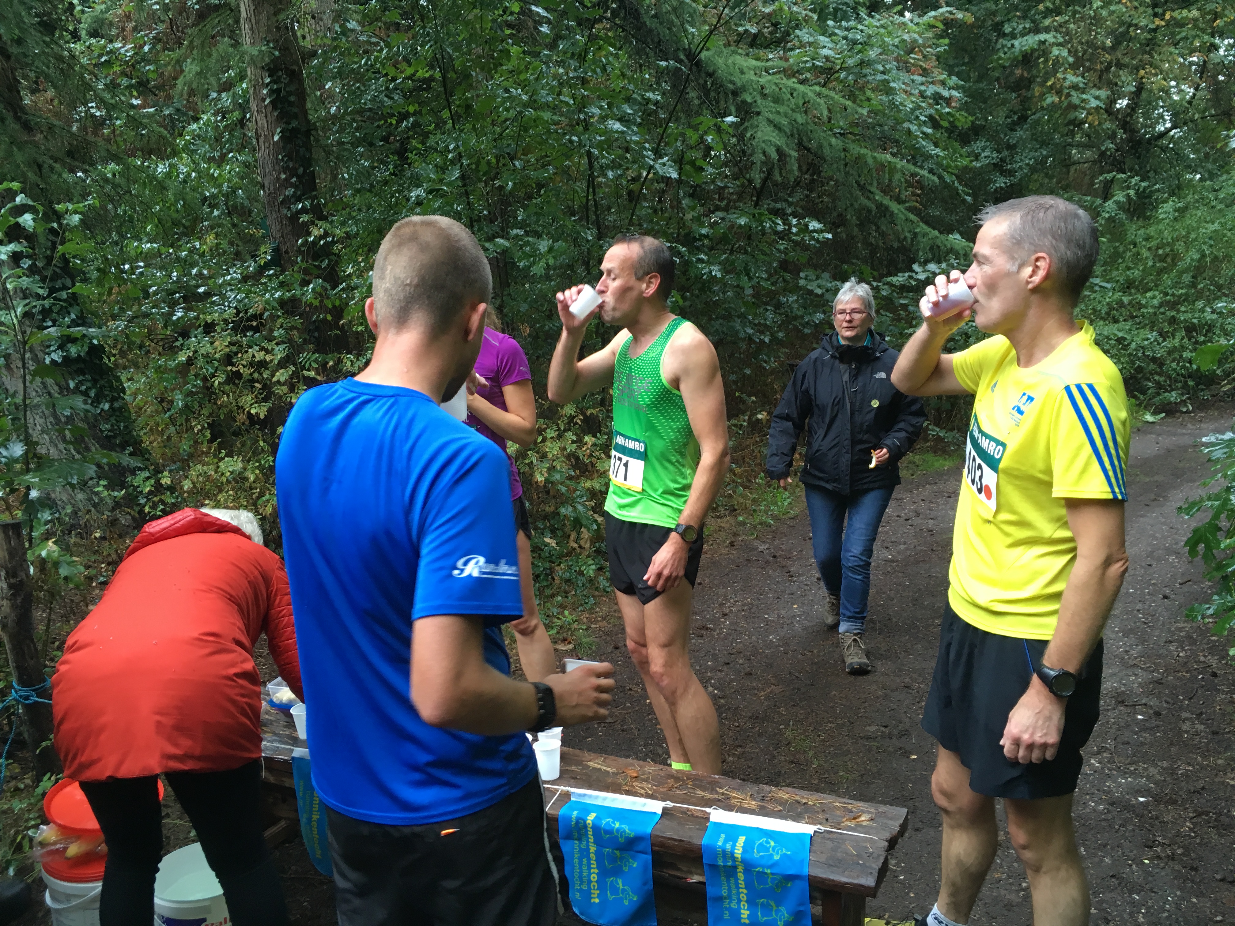 Je hoefde niets mee te nemen, er was om de 5 kilometer een prima verzorgingspost. Verder stonden er heel veel vrijwilligers bij oversteekpunten en dergelijke. De route was erg leuk, afwisselend, en half trail. Prima lopen dus. En het weer werkte ook nog eens goed mee. De verwachtingen waren dat er toch wel redelijk wat regen zou vallen, maar met uitzondering van een korte bui halverwege (en toen liepen we ook nog eens in het bos) was het heerlijk loopweer.