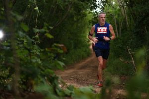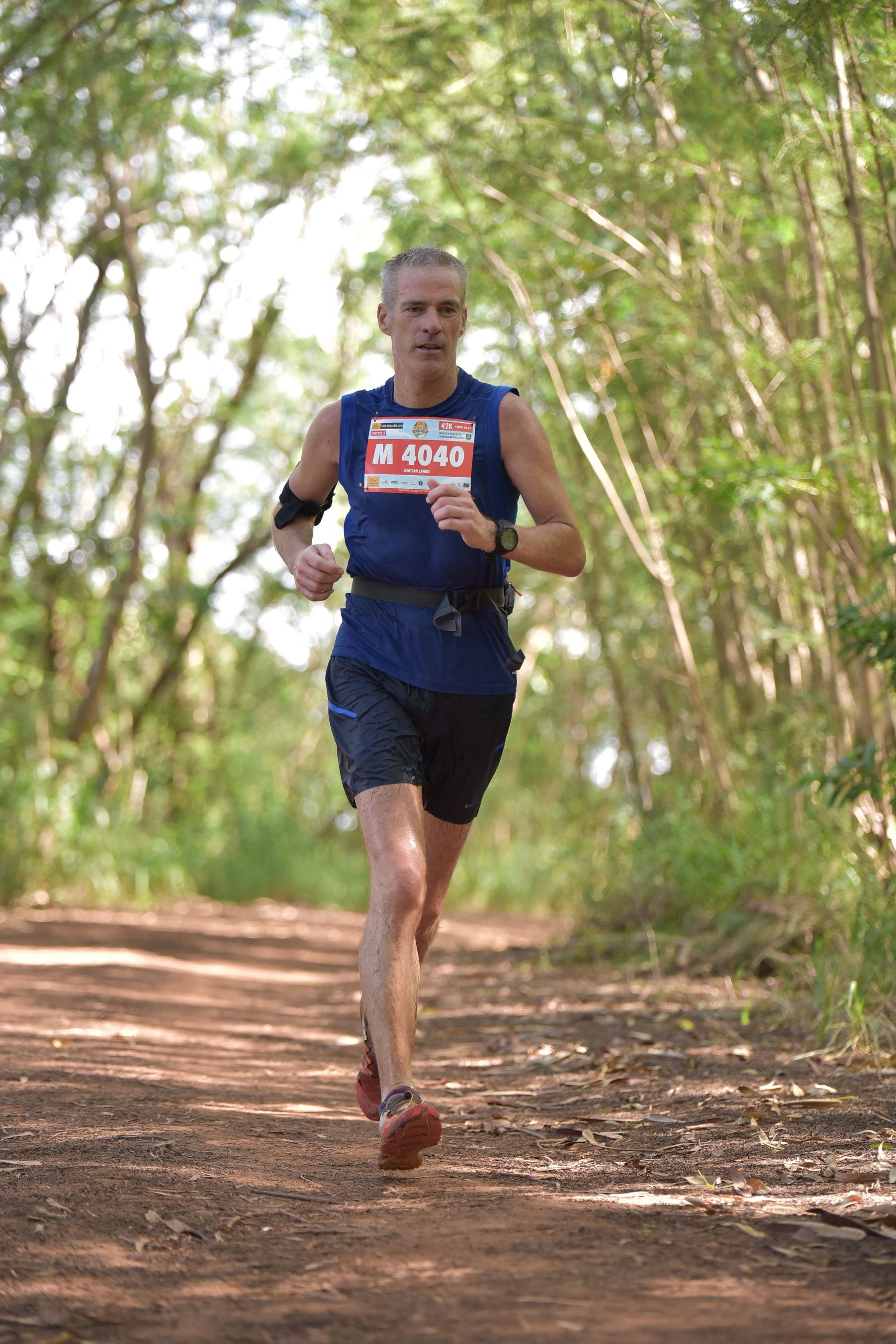 Vlak na zonsopgang van start. Gelukkig was het in het begin flink bewolkt. Een overwegend vlak parcours, maar natuurlijk nergens echt vlak. Het was eigenlijk constant vals plat. In de eerste paar kilometers bij een verkeerde beweging een flinke pijnscheut in m’n enkel. Alsof je hele lichaam onder spanning werd gezet. Ik startte in ongeveer 10e positie, maar klom in de eerste kilometers al op naar de 7e positie. Er mochten hier 5 man naar het podium, en met die prijzen (en bokalen!) hier sloeg ik dat niet af. Ik bleef dus gewoon mijn eigen tempo houden, meestal pak ik er nog wel wat terug. Als m’n enkel het maar hield.